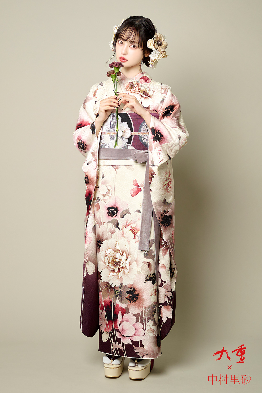 今流行りのくすみカラー、淡いピンク色地の振袖で当店でも大人気シリーズです。
