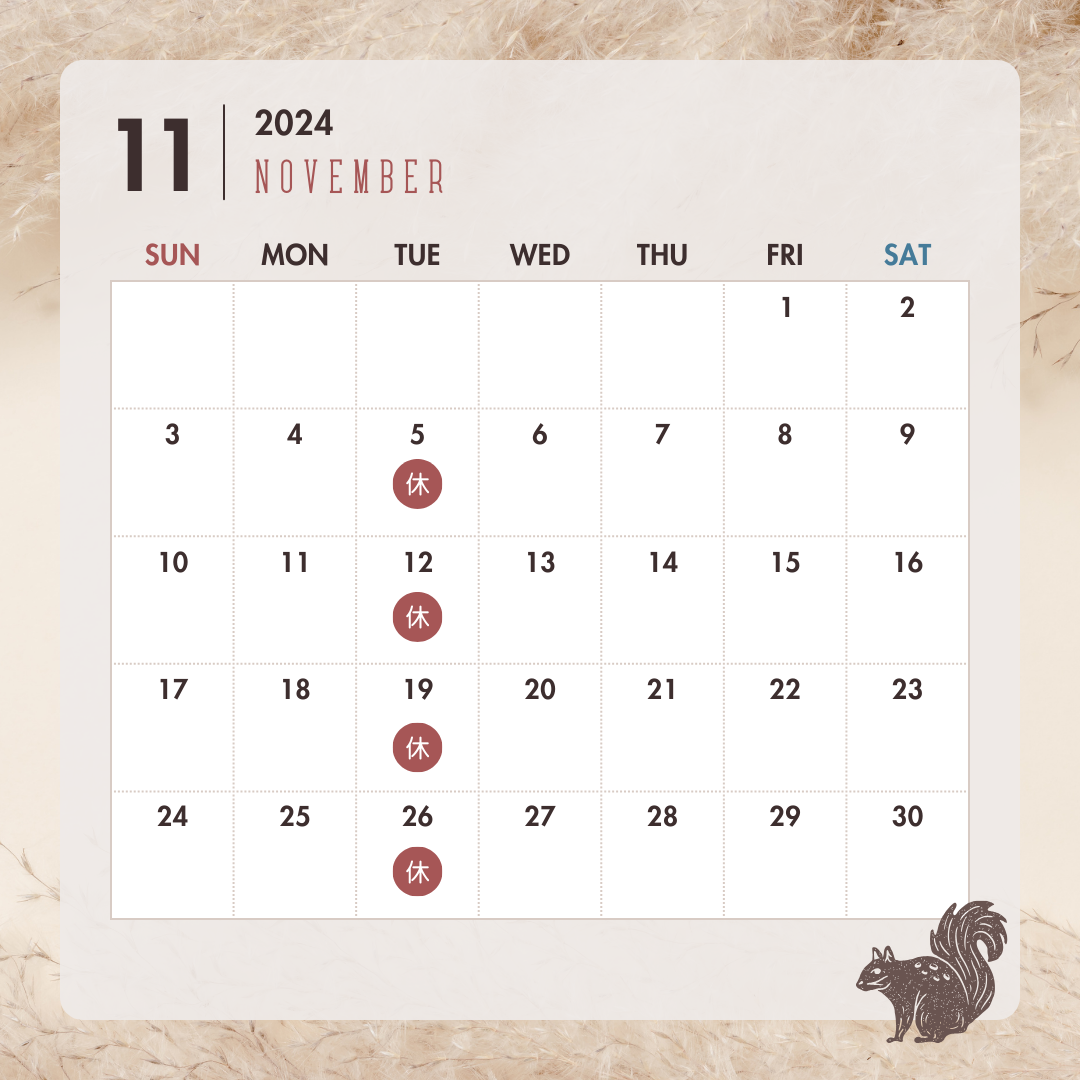 11月のお休みをお知らせ致します。