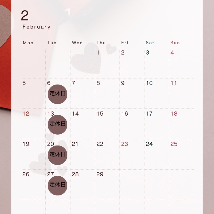 2月のお休みをお知らせ致します。