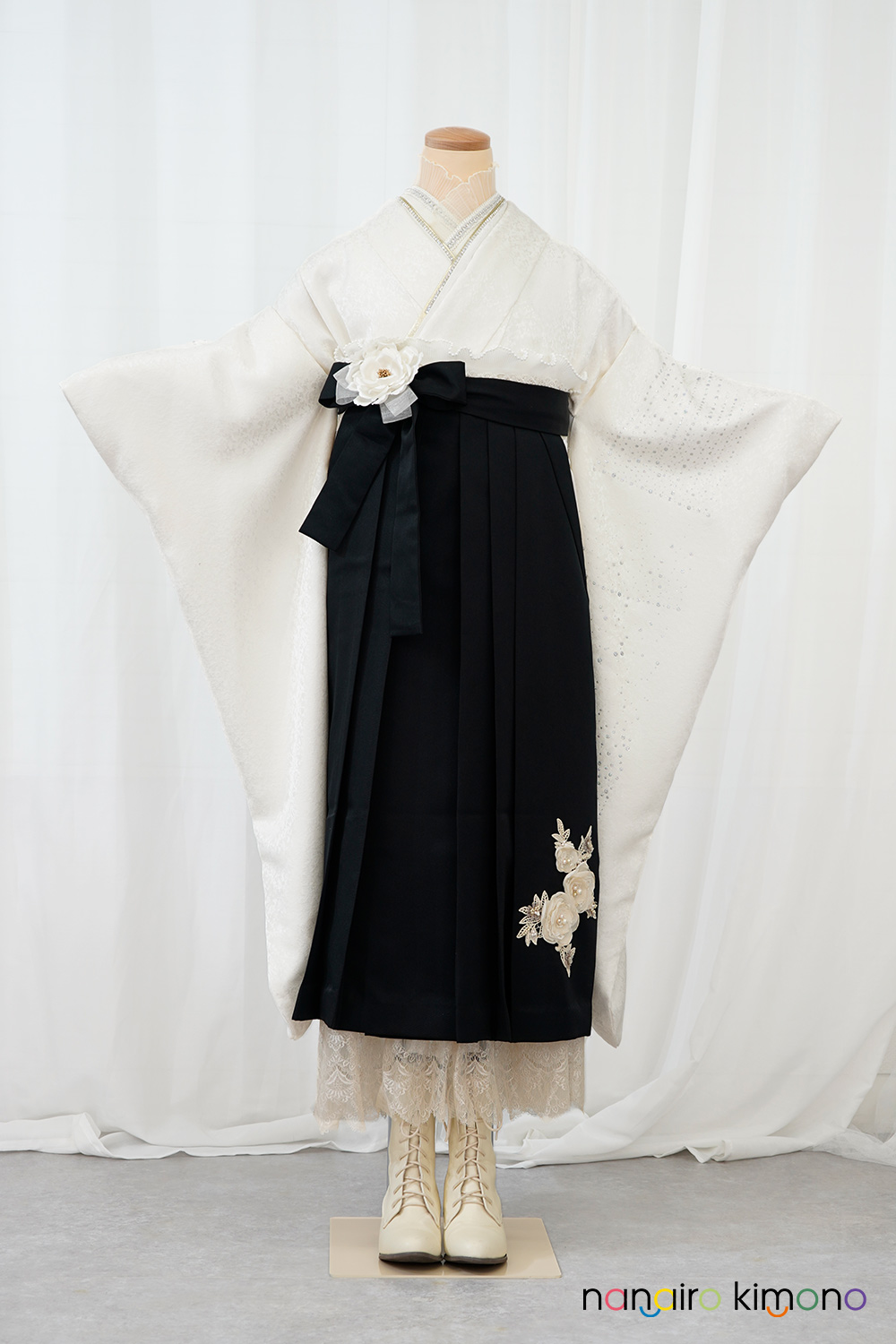 卒業式レンタルフルセット|白色・シンプル大柄 F210