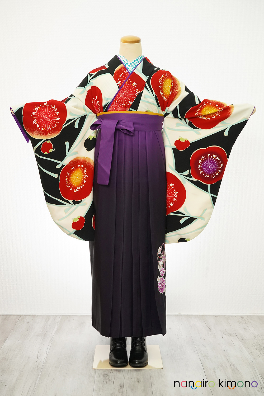 卒業式袴フルセット|クリーム地・クールモダン柄 2S010