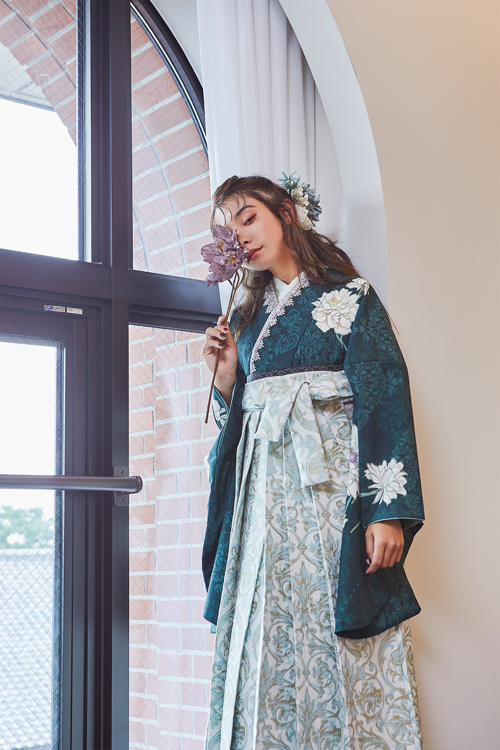 卒業式袴フルセット|白色 大人気レース柄 2S097
