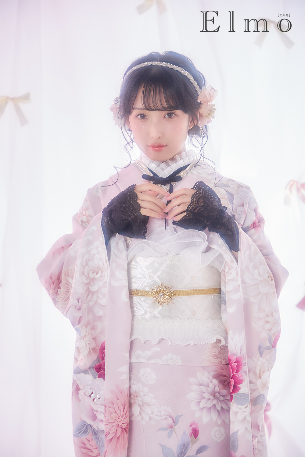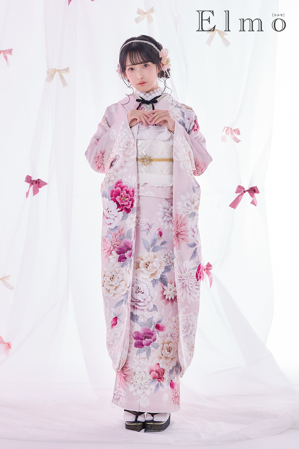 透明感たっぷりのシャーベットカラー、ワントーンですっきりまとまる洋花柄で、当店大人気の一着です。