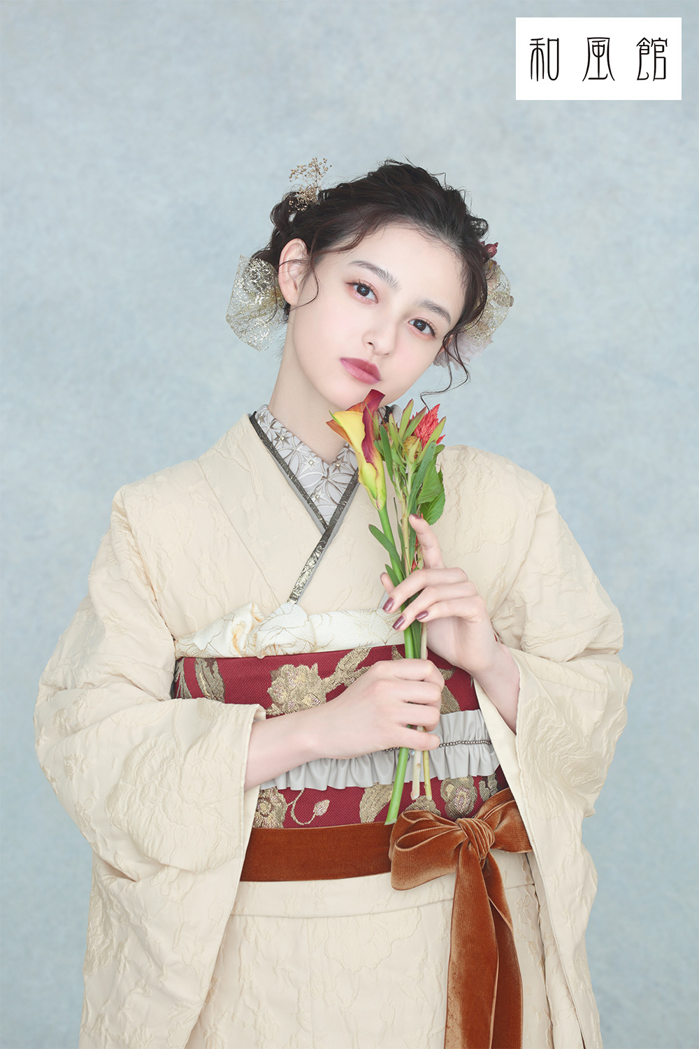 ジャガード織で生地の凹凸が際立ち、総刺繍のようなゴージャスな雰囲気です。