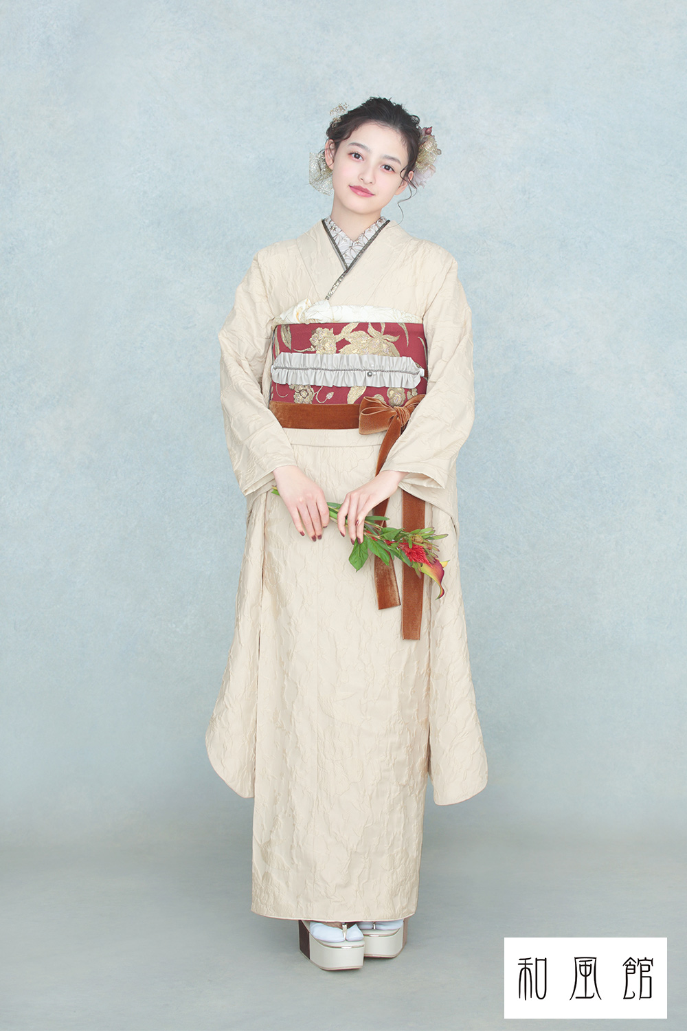 振袖フルセット|赤色 可愛い薔薇柄 FP006