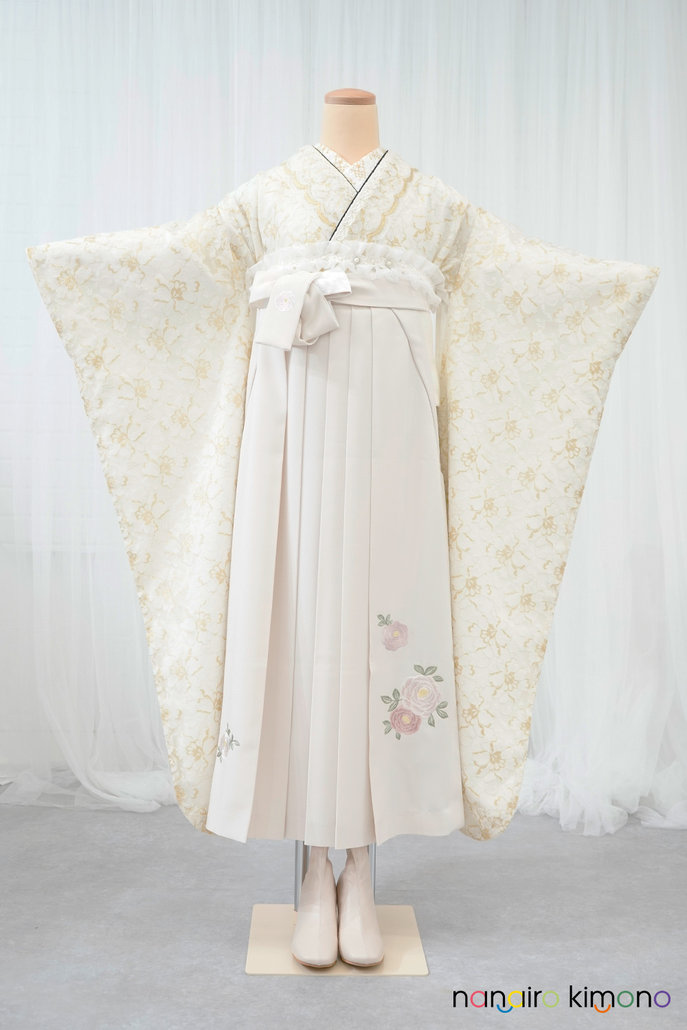 卒業式袴フルセット|白ゴールド色・レース生地 FP013