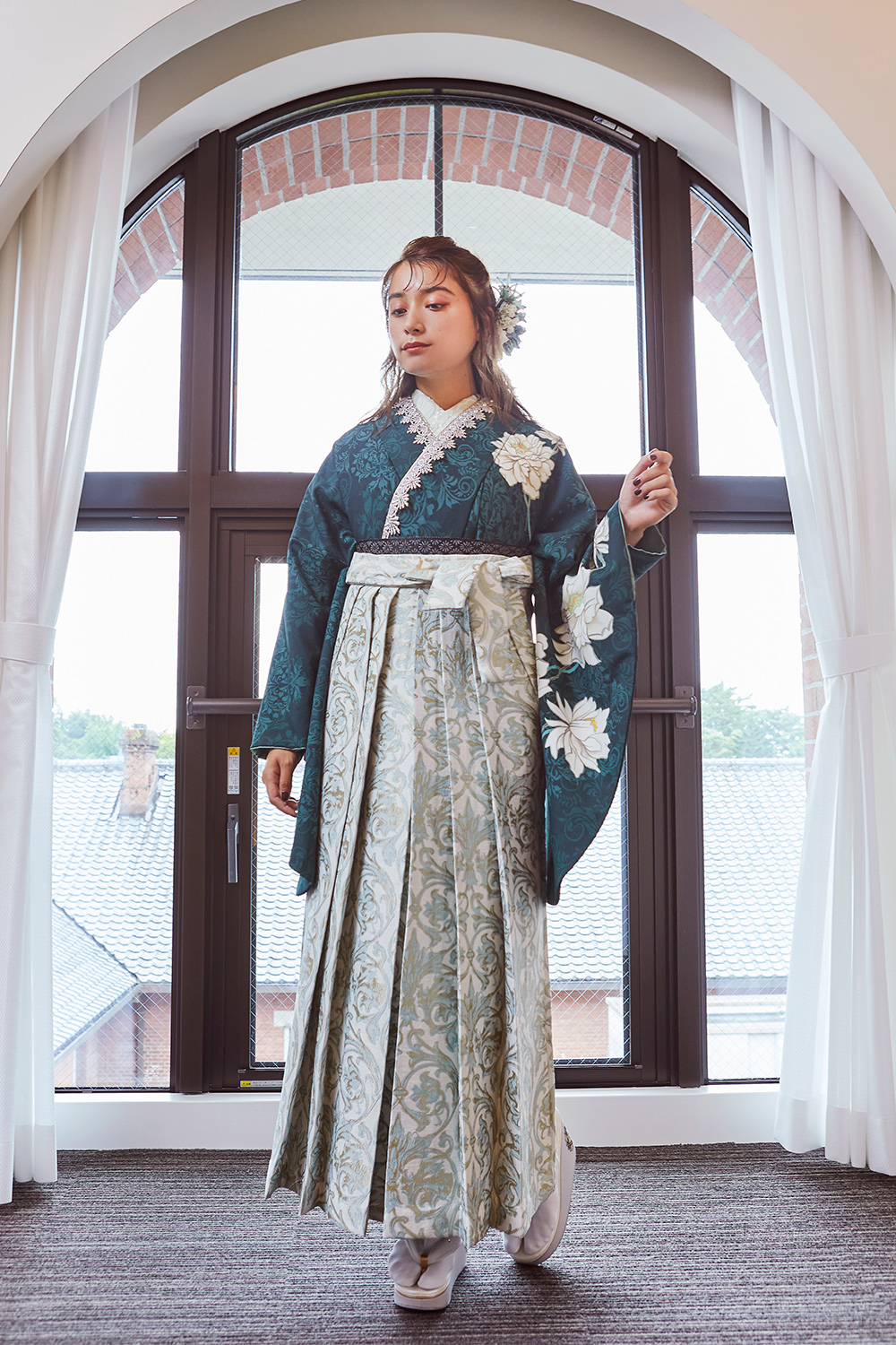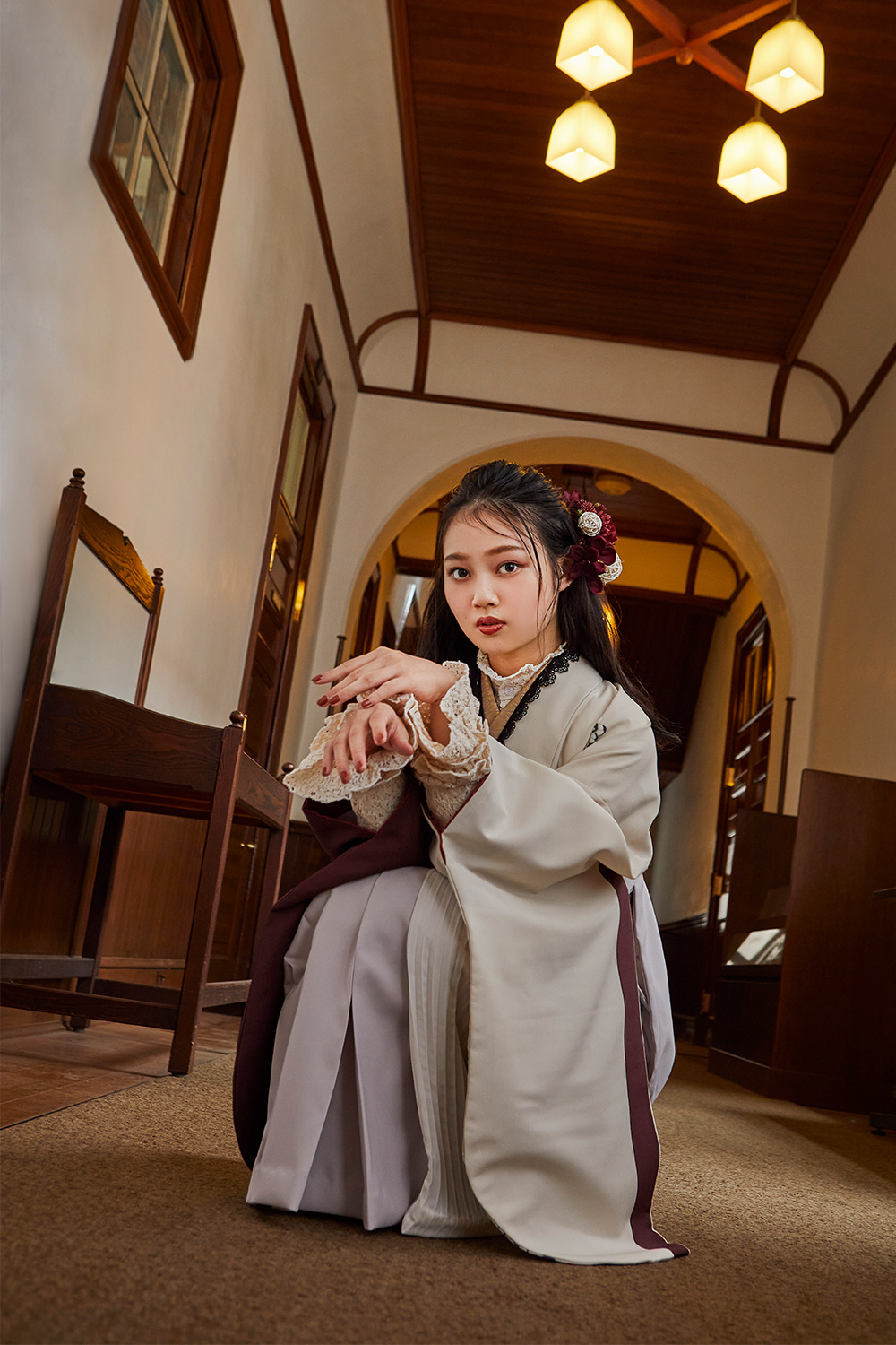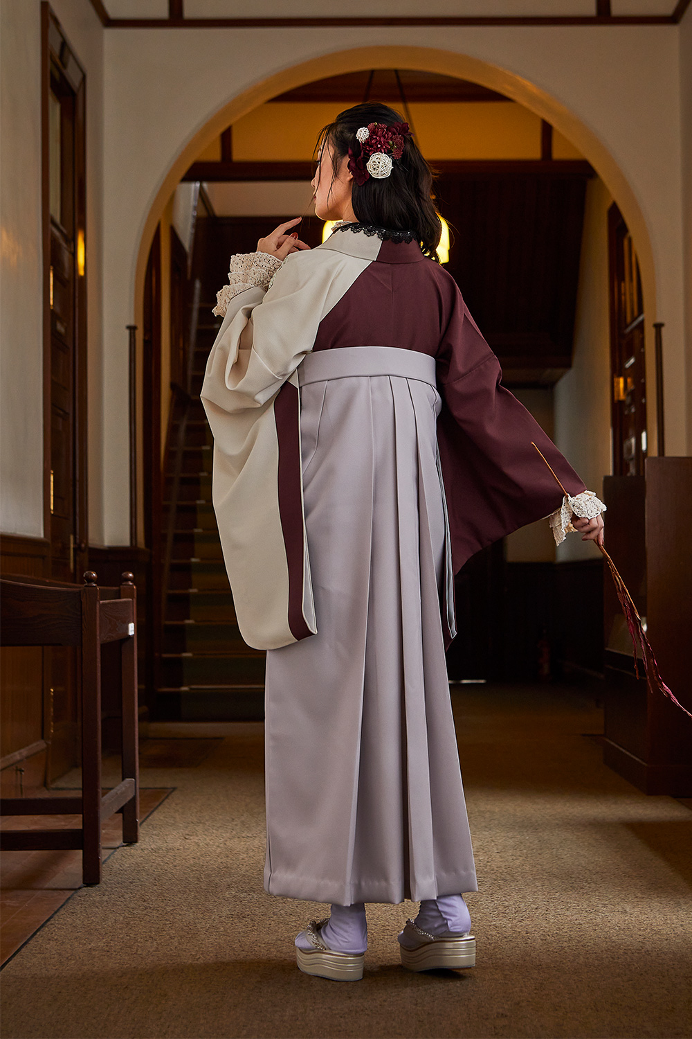 卒業式袴フルセット|白色エンジ色 洋花柄 2S102