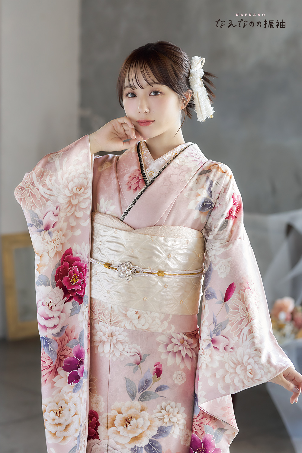 地色はパステルカラーの淡いピンク色で、可愛らしいピンクの花柄が描かれています。