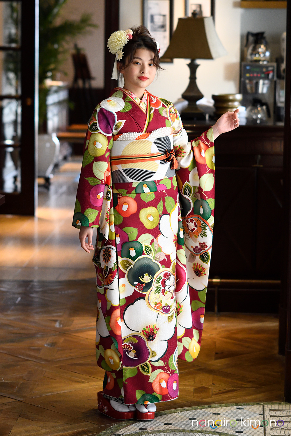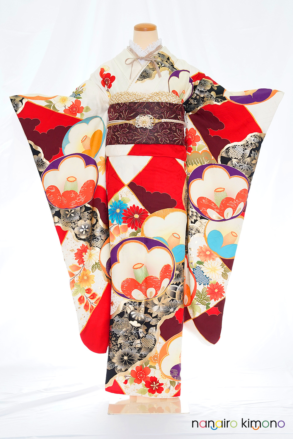 振袖フルセット|ワインレッド地色 大柄モダン F088