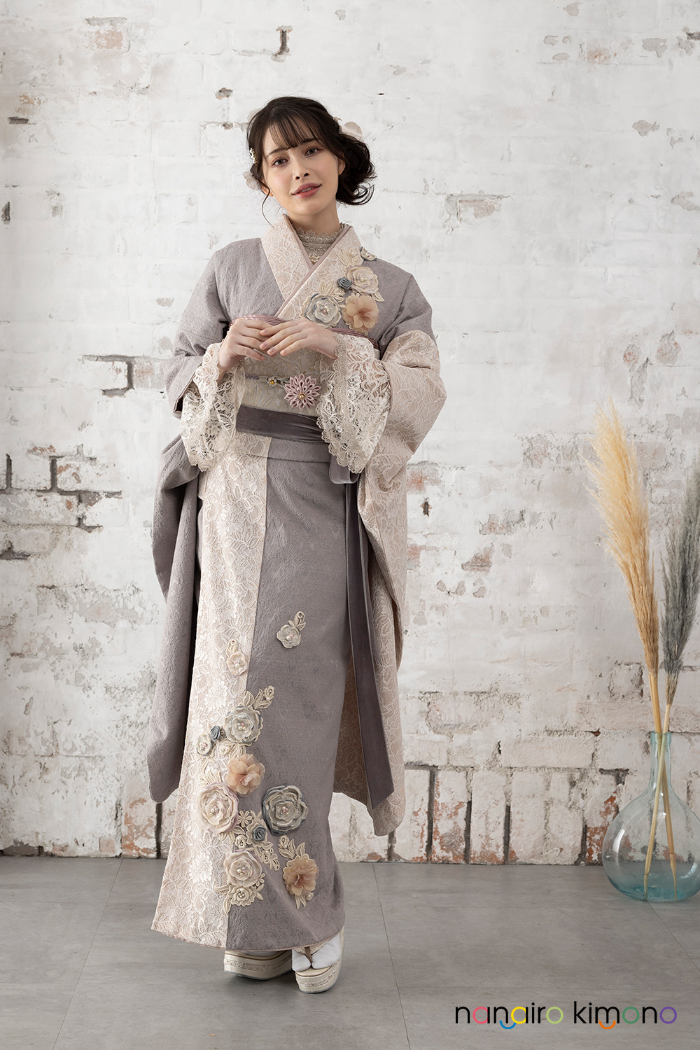 今流行りのくすみカラー振袖で当店でも大人気シリーズです。