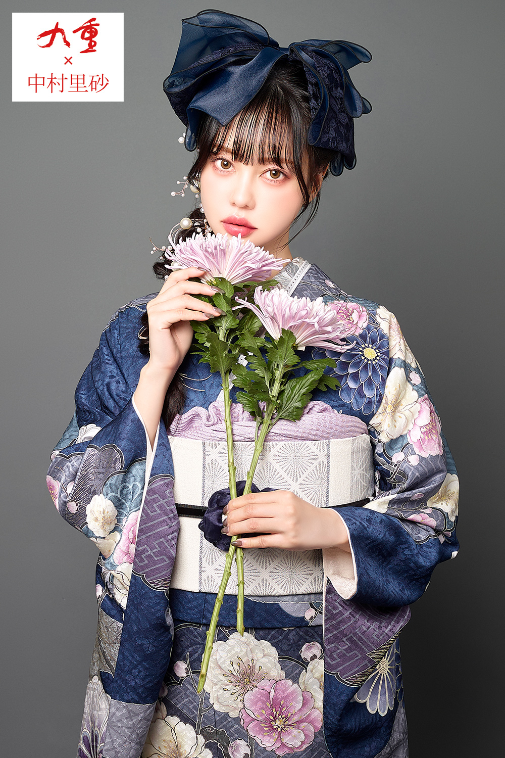 ブルー(青)色は今までの振袖にはあまりない色合いで、派手さもあり、小物は可愛くおしゃれにアレンジでき、上品に着こなしていただける一着です。