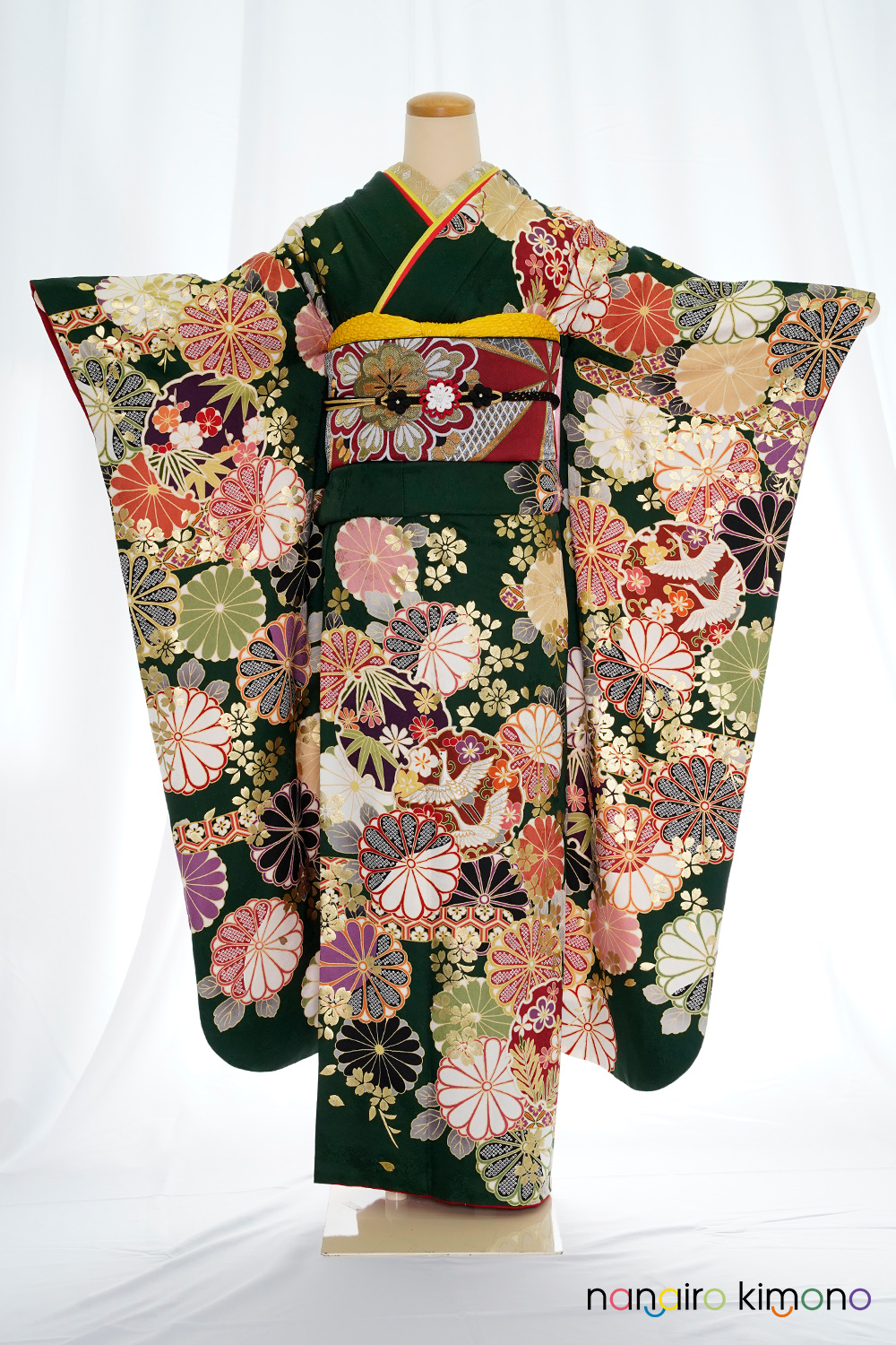 今田美桜プロデュースの派手で可愛いいおすすめの振袖です。白地に青とワインレッドの格子模様が印象的です。金彩が施された白をベースに色とりどりに描かれた桜。格子模様や桜の上品なキラキラ、全てにおいて目を引くこと間違いなしの一着です。