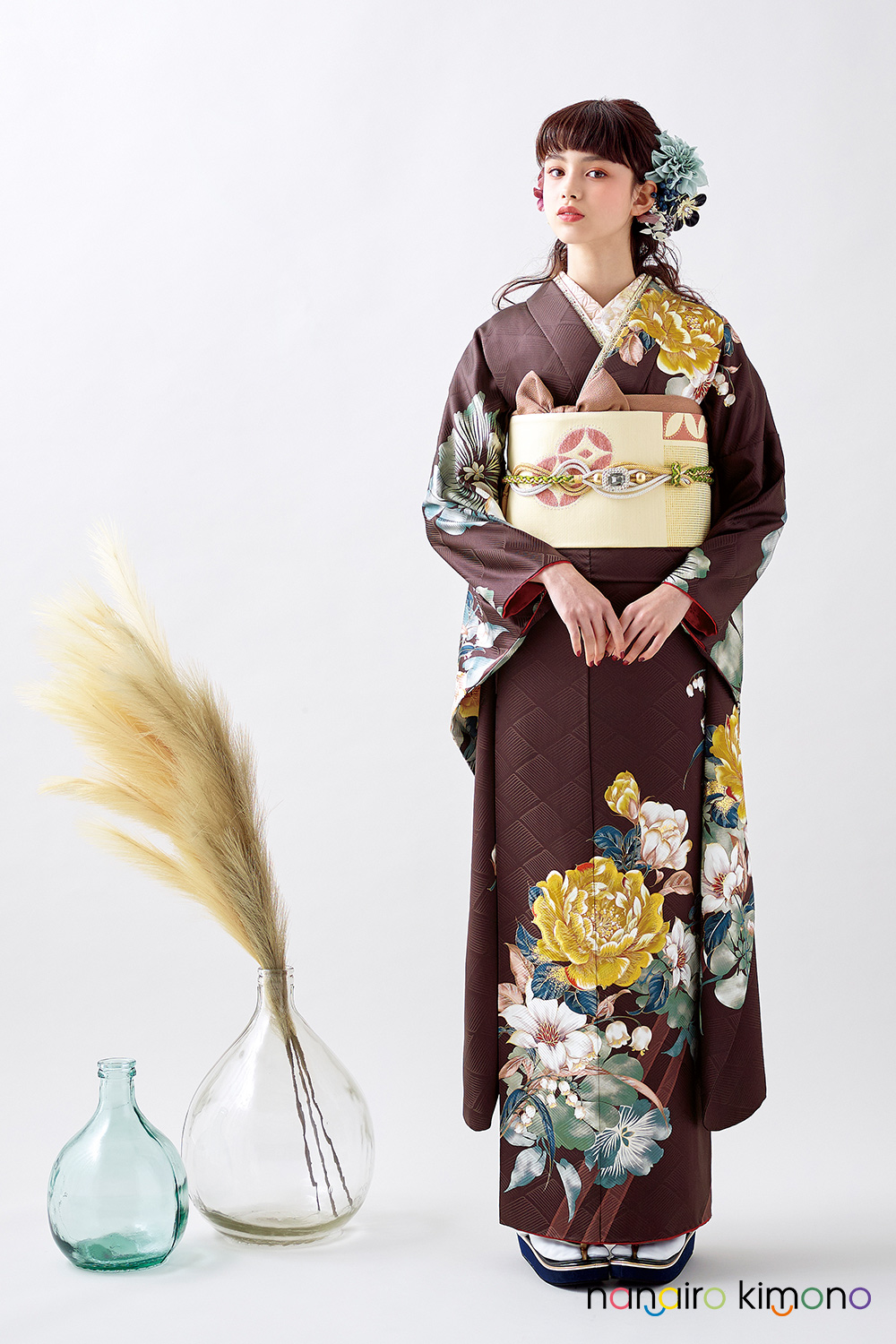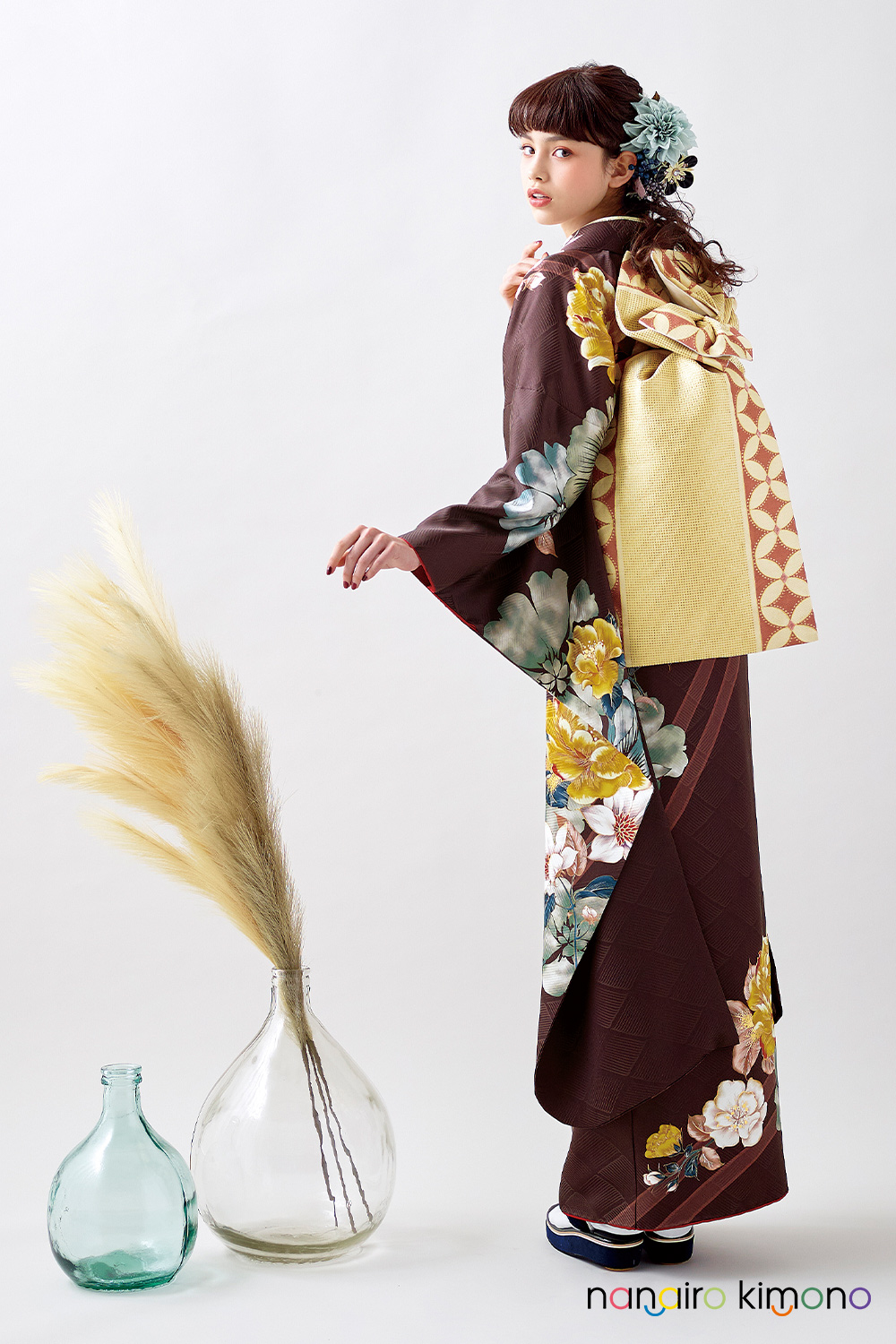 流行中のブラウン系、茶色・ベージュ系の振袖は当店でも大人気シリーズです。