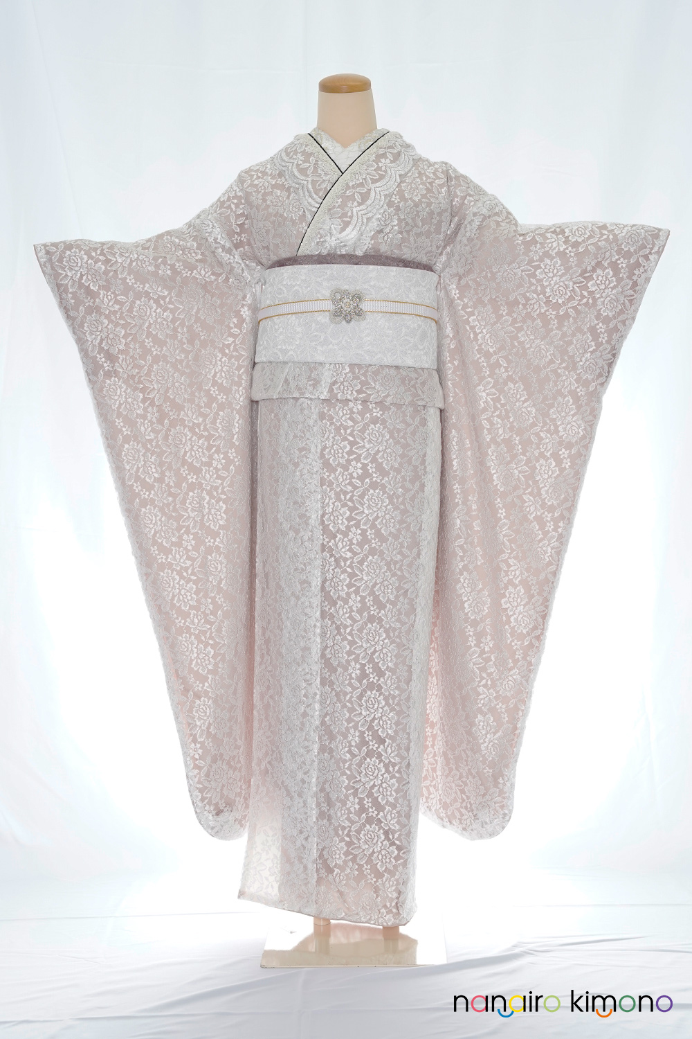 振袖フルセット|ピンクベージュ色 レース生地 FP021