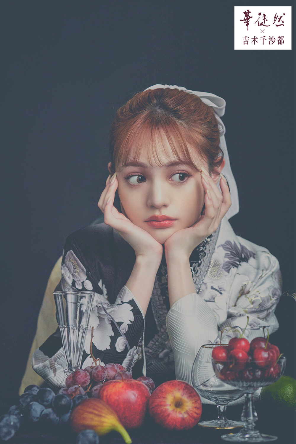 黒色地の着物で、色合いはシンプルですが、古典模様の豪華な柄です。コーディネート次第で可愛くも、カッコよくも着こなしていただける一着です。
