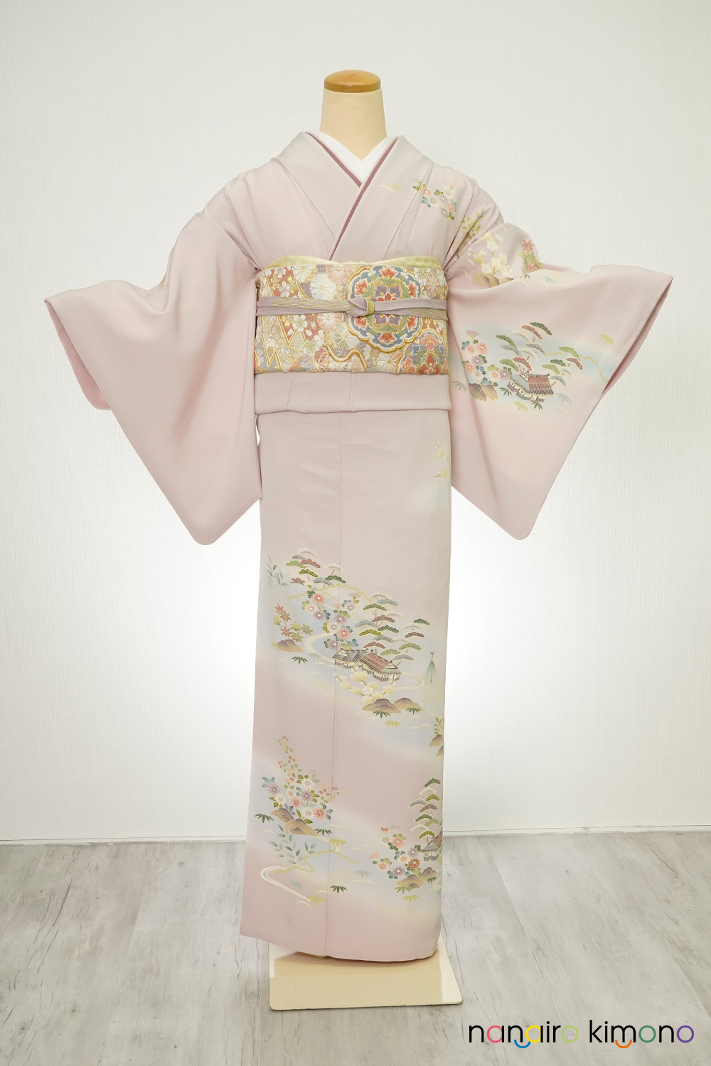 淡いグリーン地にかわいらしいお花柄の訪問着です。