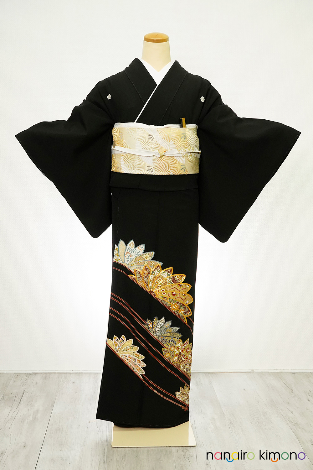 淡い黄色地に古典柄のお花が華やかな訪問着です。