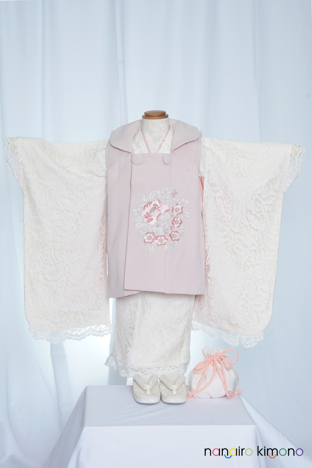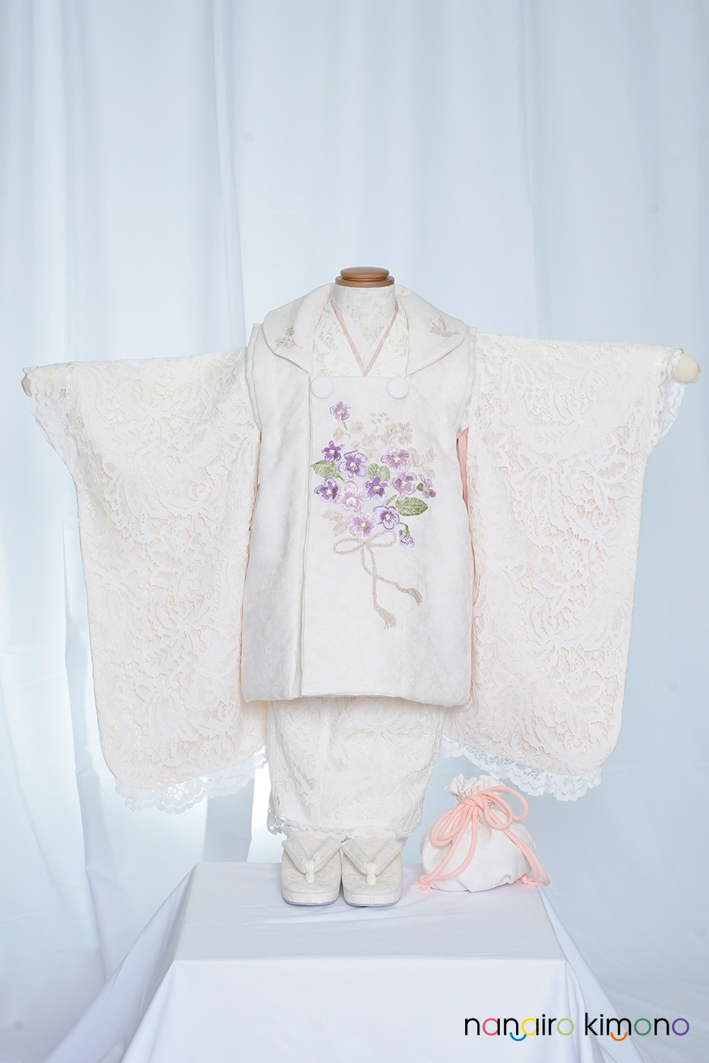 3歳女児・着物被布セットレンタル|白色レース柄 G3-着物001