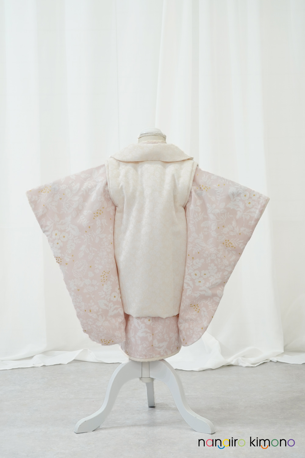 3歳女児・着物被布セットレンタル|白ピンク小花柄 G3-着物S001