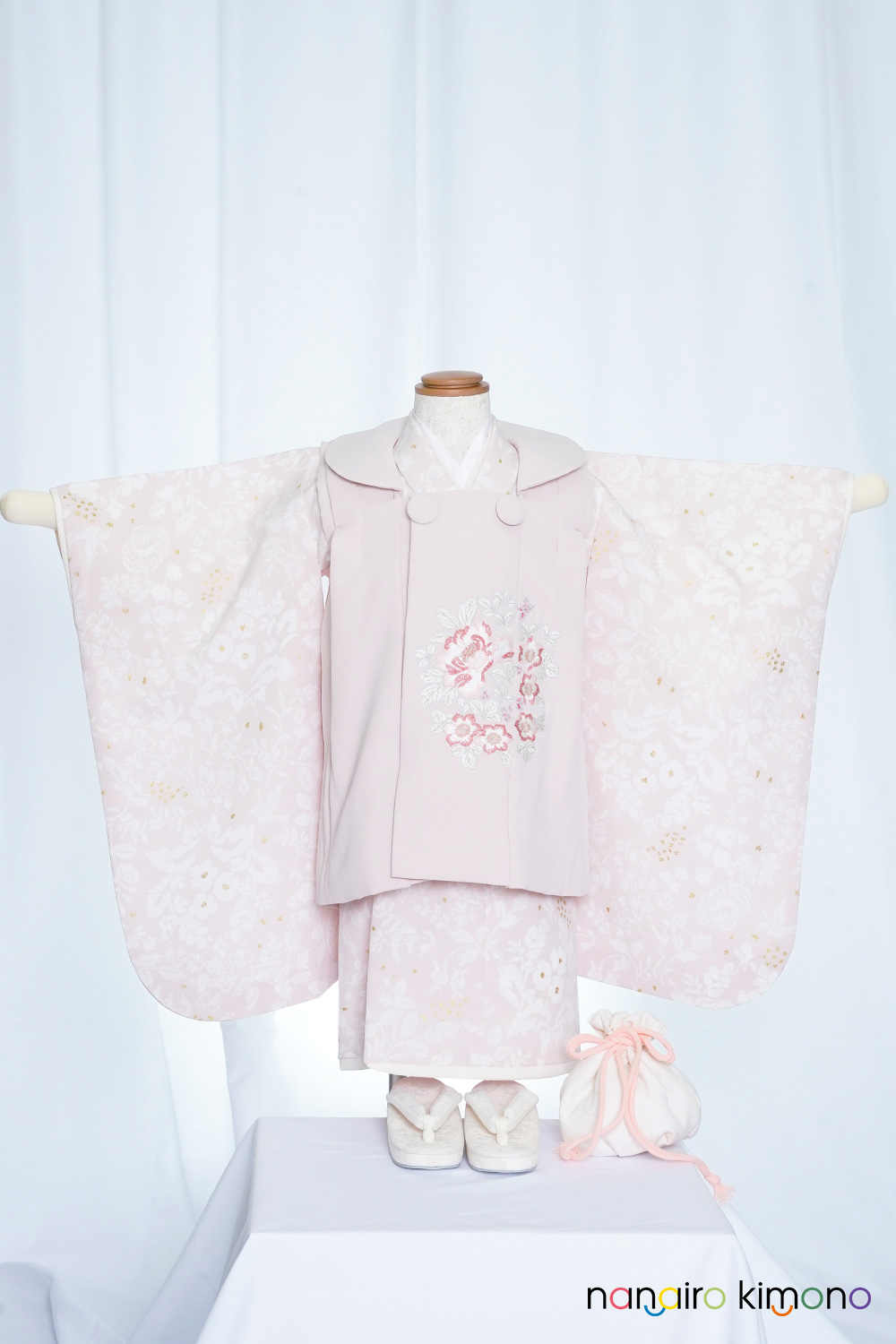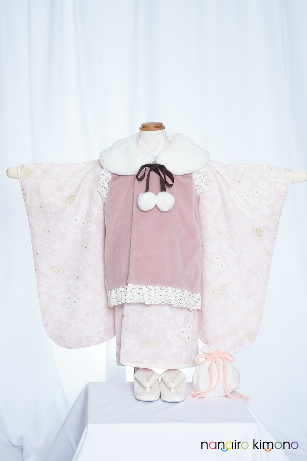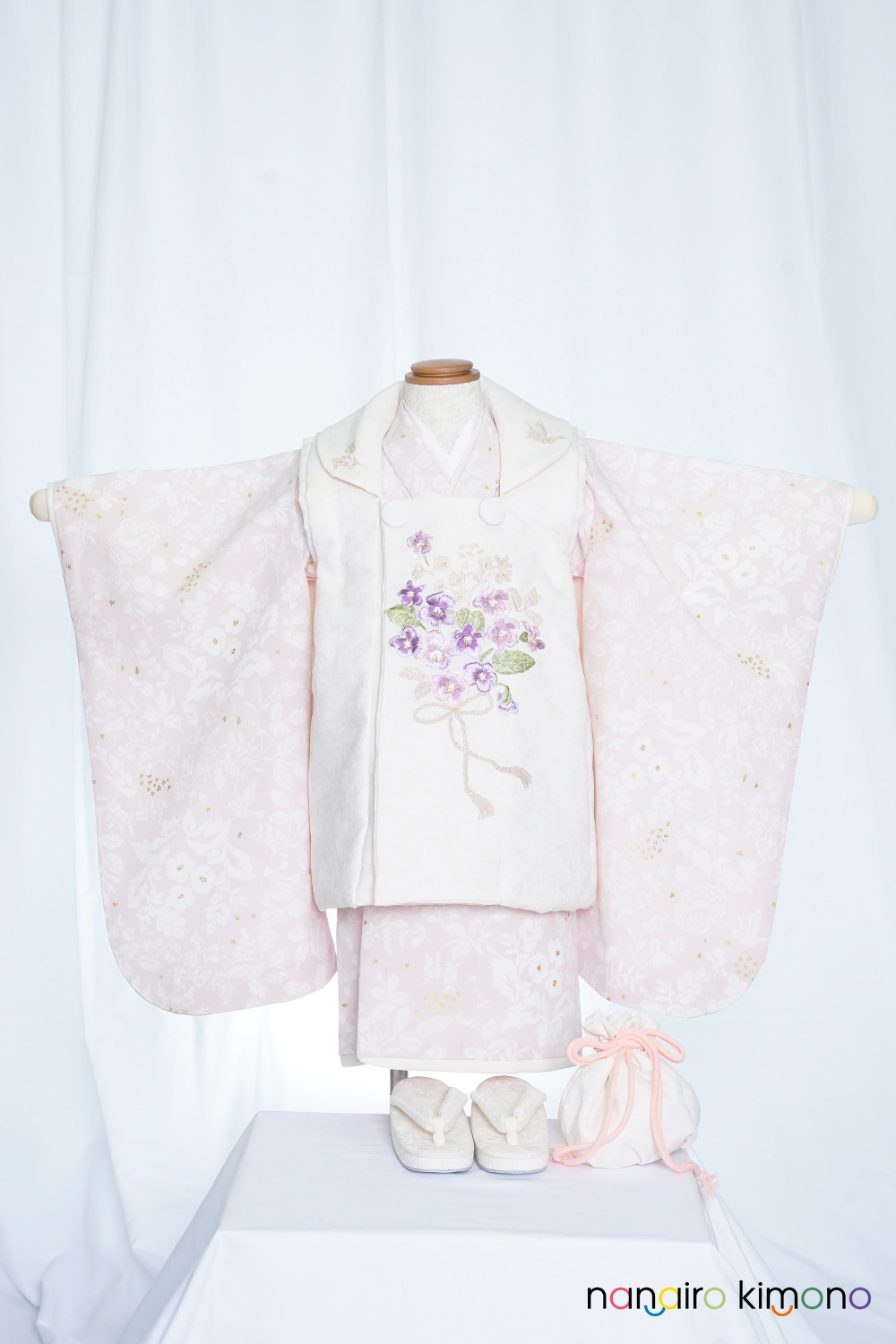 3歳女児・着物被布セットレンタル|白ピンク小花柄 G3-着物S001
