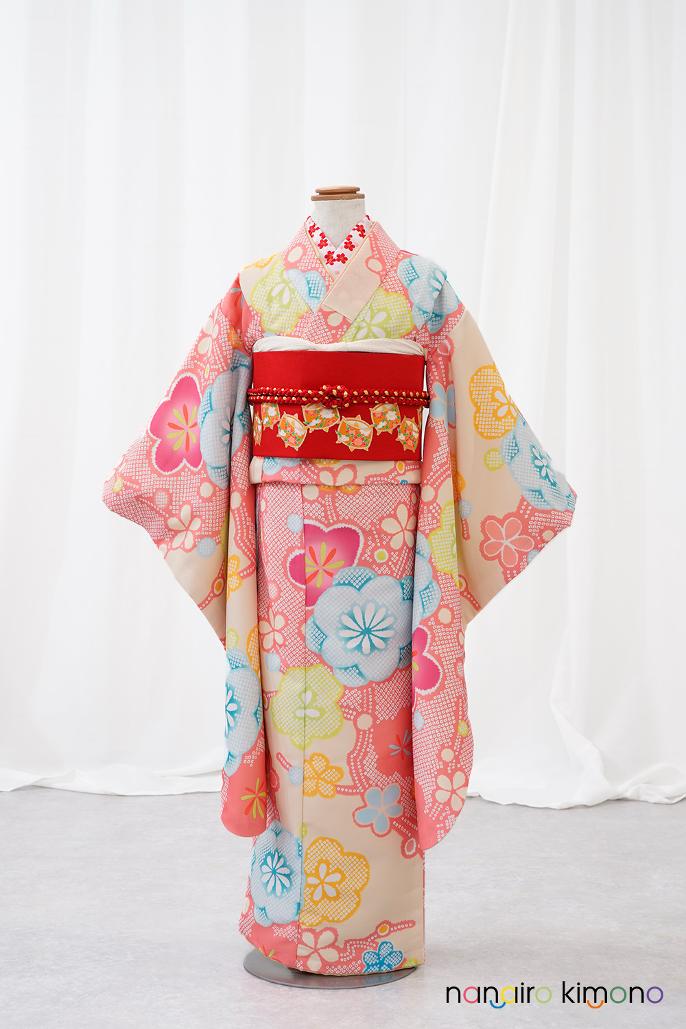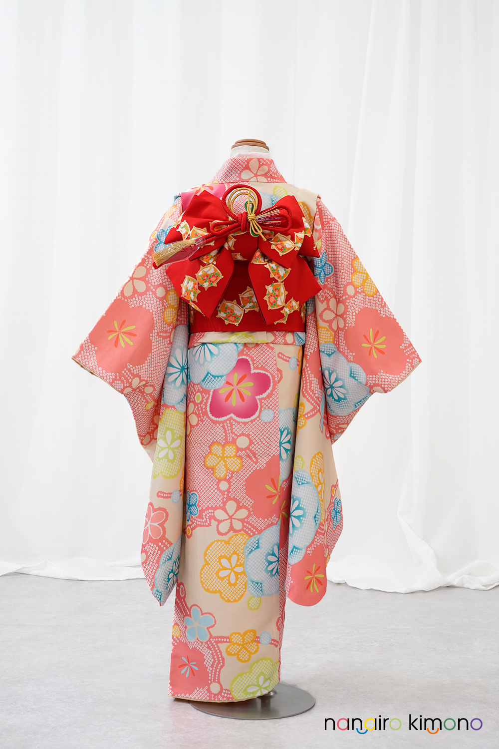 7歳女児・着物セットレンタル|桃色地・絞り梅・和柄古典模様 G7-006