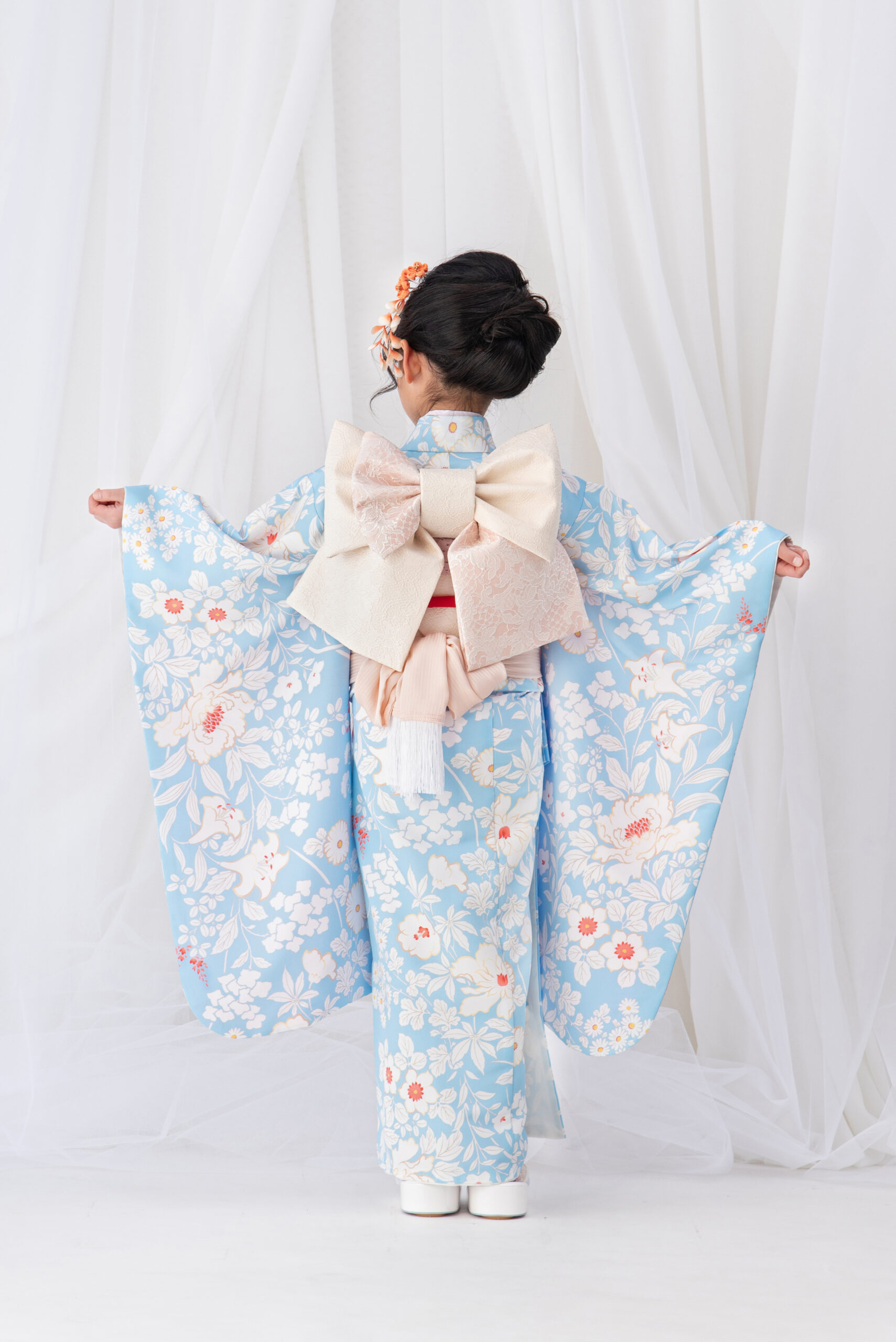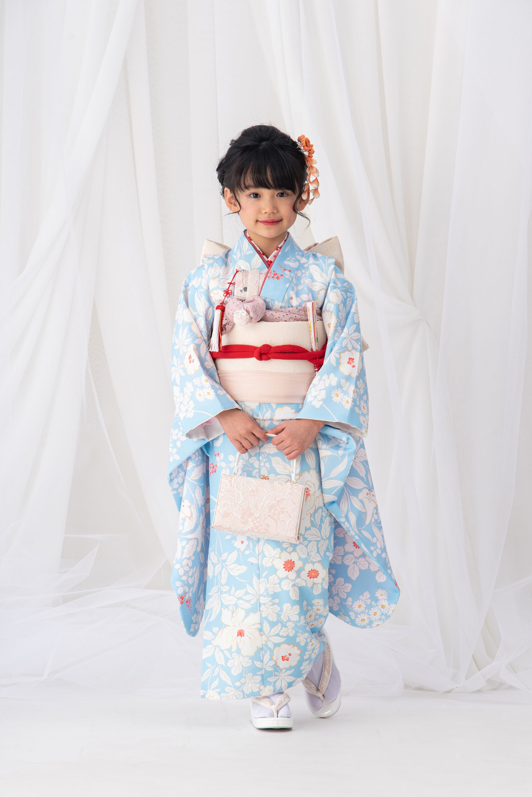 7歳女児・着物セットレンタル|水色 花柄