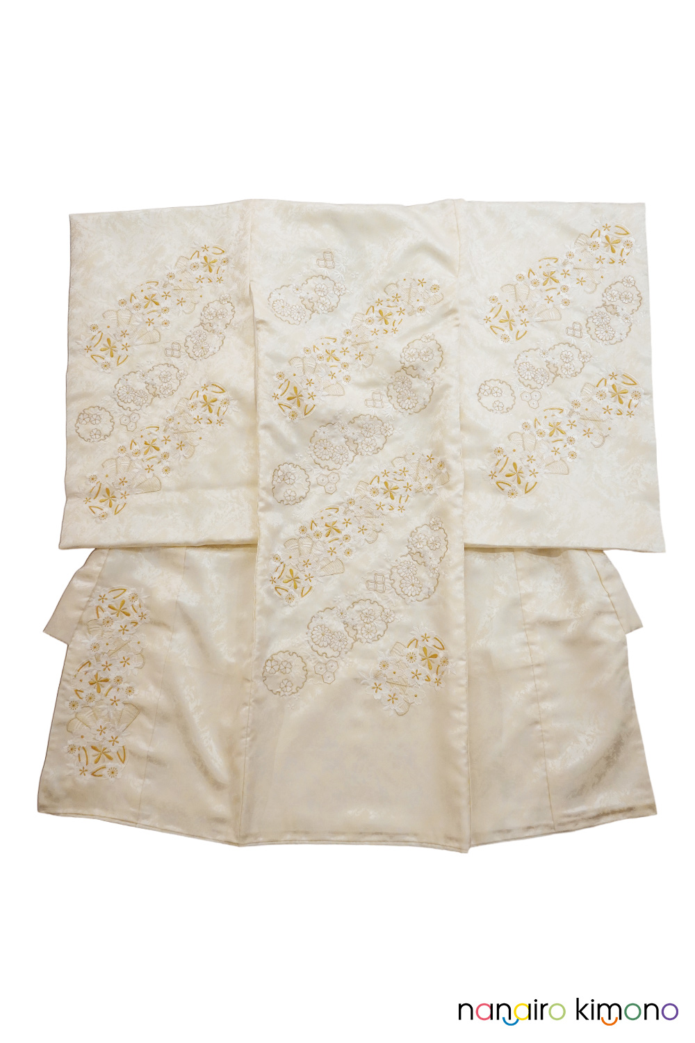女の子・お宮参り産着レンタル|白クリーム色地・小花柄 G-産着010