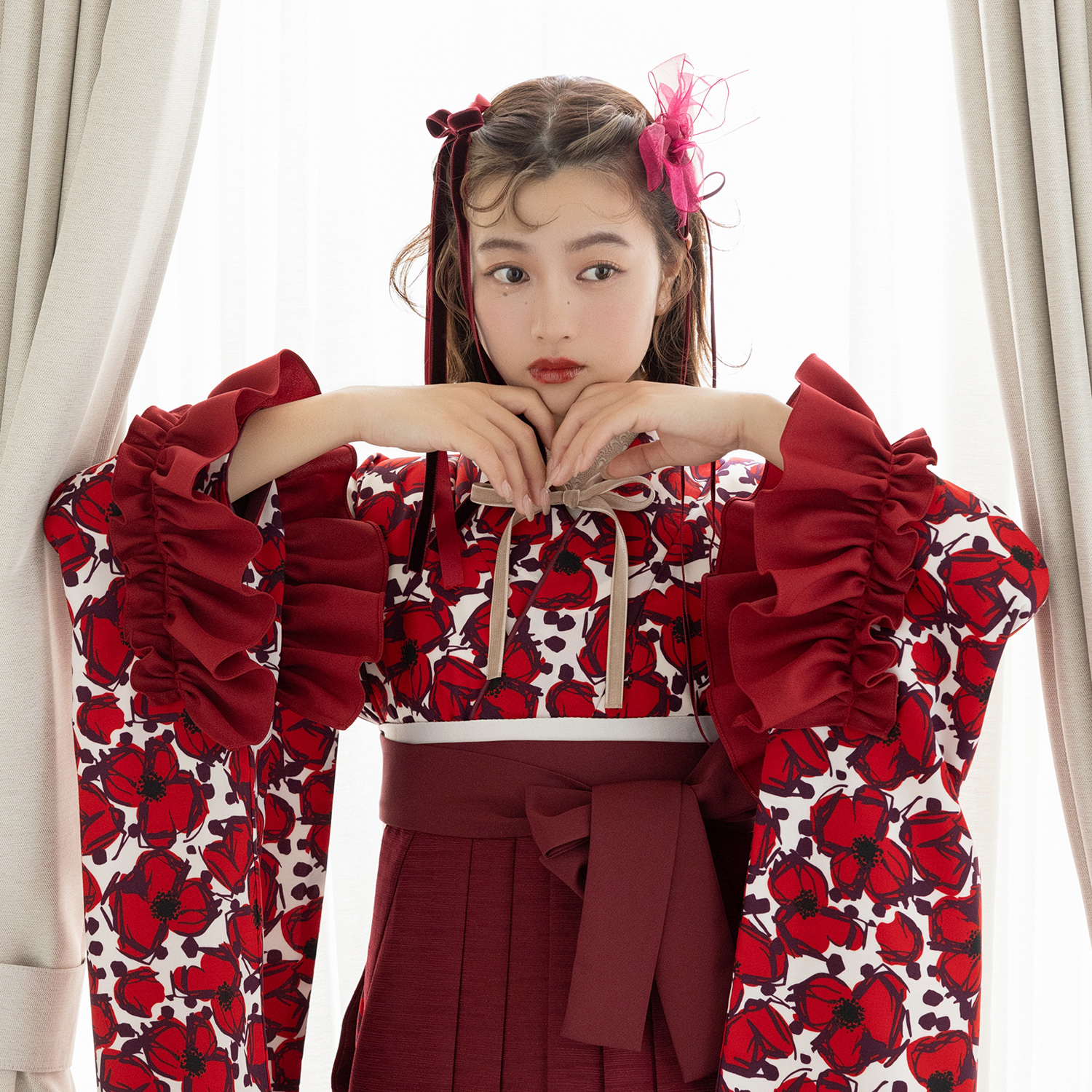 白とキラキラゴールドにチュールやパール、レースなど女の子の好きを詰め込んだお振袖となっております。