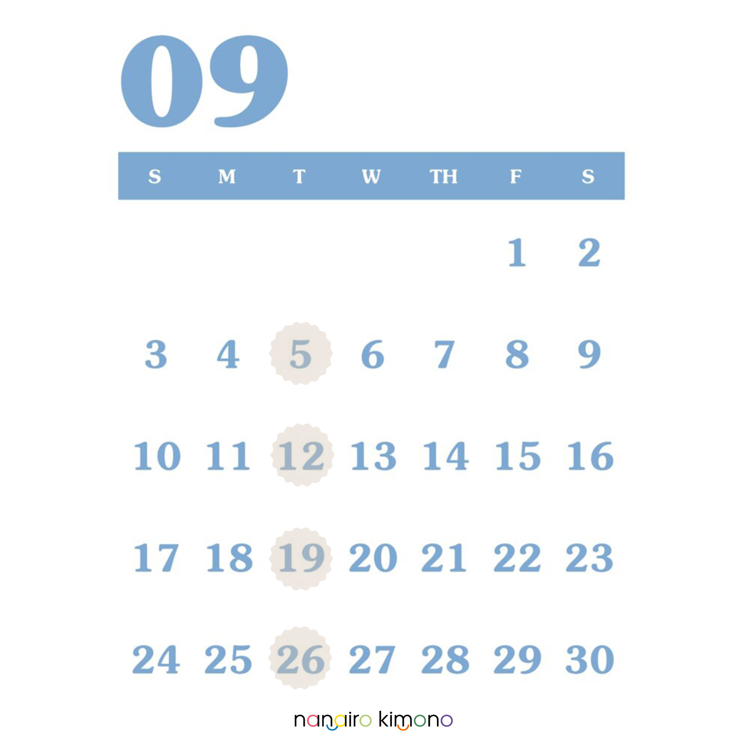 9月のお休みをお知らせ致します。