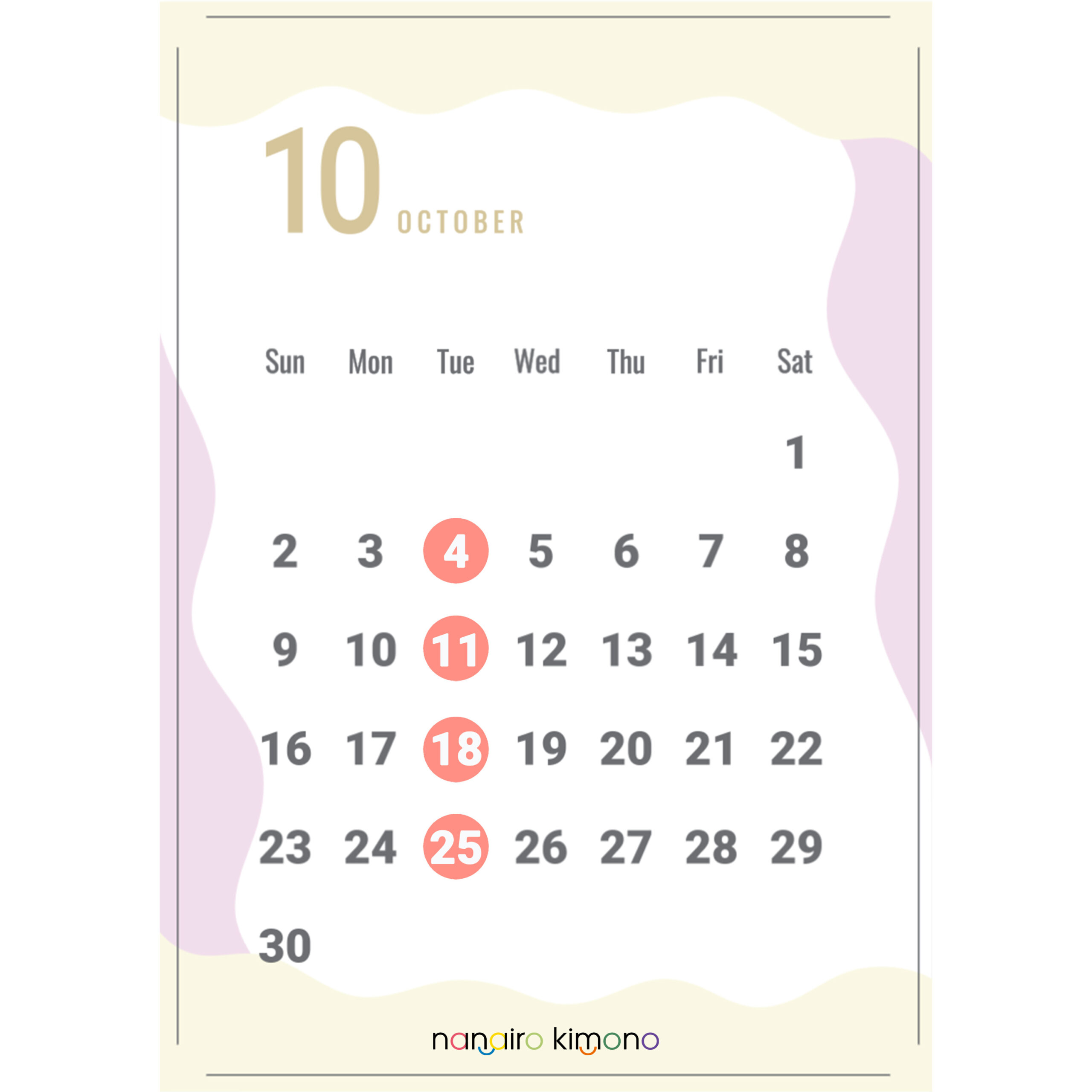 10月のお休みをお知らせ